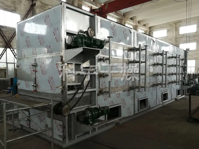 DW系列多層帶式干燥機是成批生產(chǎn)用的連續式干燥設備,用于透氣性較好的片狀、條狀、顆粒狀物料的干燥,對于脫水蔬菜、催化劑、中藥飲片等類(lèi)含水率高、而物料溫度不允許高的物料尤為合適;該系列干燥機具有干燥速度快、蒸發(fā)強度高、產(chǎn)品質(zhì)量好的優(yōu)點(diǎn), 對脫水濾餅類(lèi)的膏狀物料, 需經(jīng)造?;蛑瞥蓷l狀后方可干燥。
