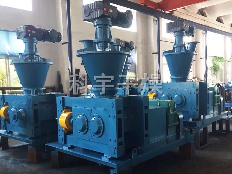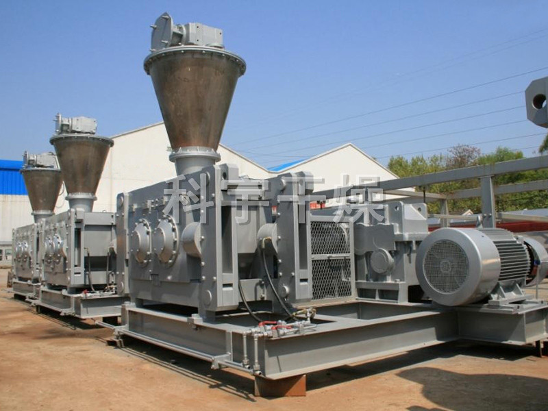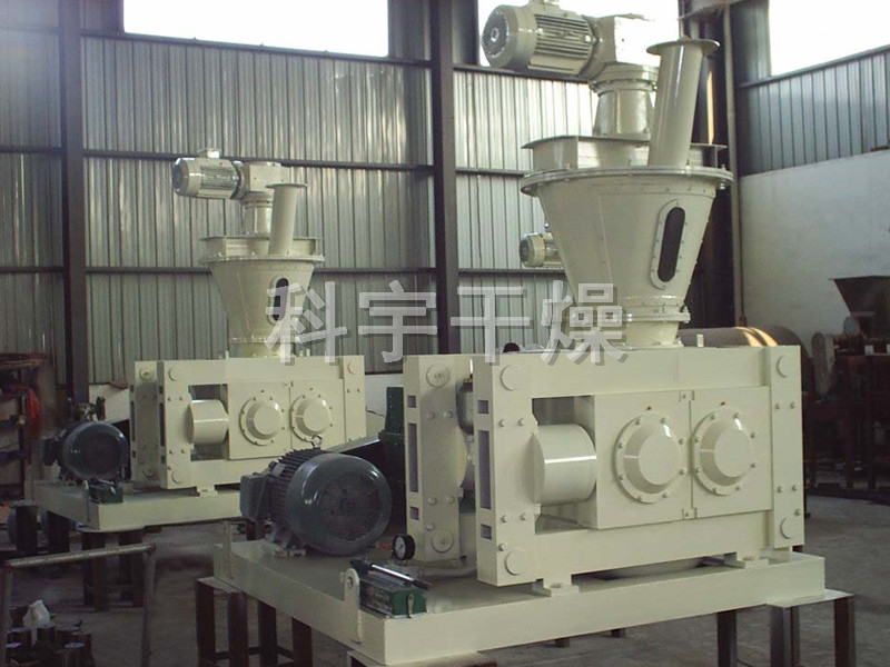 擠壓造粒的形式可以有對輥式和輪輾式兩種,對輥式擠壓是先壓成大塊,再破碎成顆粒,這樣裝置的能力大、顆粒強度高、能耗低,對輥擠壓在國外使用廣泛。輪輾式是在輥表面直接做成有穴槽型的形狀,一次擠成成型顆粒。產(chǎn)品強度較低有時(shí)需添加粘結劑。適合做有機肥和復合肥等顆粒肥料。