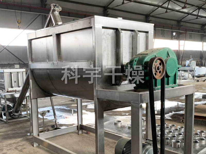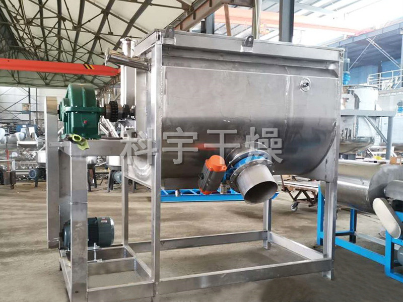 螺帶混合機一般用于粘性或有凝聚性的粉粒體的混合以及粉粒體中添加液體及糊狀物料的混合,同時(shí)由于粘性物料清洗困難的特點(diǎn),適用于產(chǎn)量大、不經(jīng)常更換品種的場(chǎng)合混合。