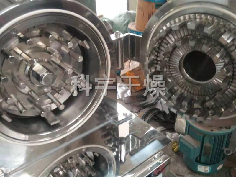 ??物料由進(jìn)料斗送進(jìn)粉碎室,經(jīng)刀刃和刀座的沖擊,旋轉刀和固定刀同時(shí)剪切粉碎,由于受到旋轉離心力的作用,物料自動(dòng)從出口處流出。