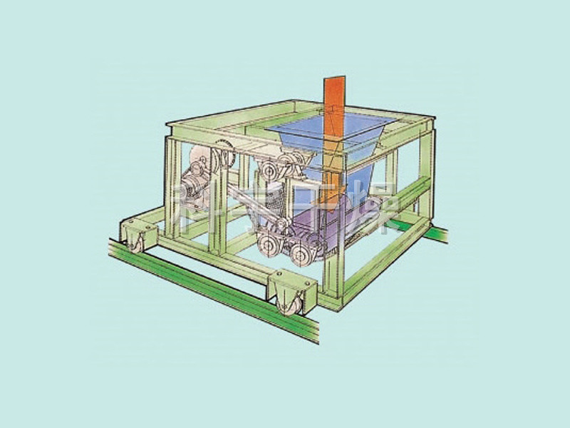 ◎槽形成型機: 由加料斗和刻有槽的二根輥子構成。以增大物料表面積的造粒為目的。物料被內側運轉的輥子吸入,被反轉的外側刮刀切成粒狀。