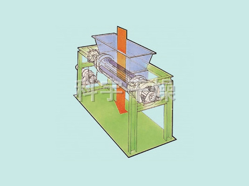 ◎水平擠出成型機: 由加料斗、二根輥子和U形振動(dòng)網(wǎng)構成。以增大物料的表面積為目的,造粒物料與振動(dòng)網(wǎng)接觸,由旋轉輥子的強制壓力擠出網(wǎng)外,形成圓柱形的顆粒。