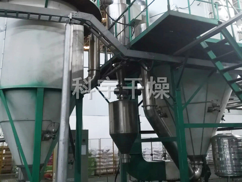該機采用全封閉形式,所有部件均采用不銹鋼制造,配有三級凈化裝置,過(guò)濾后的空氣達十萬(wàn)級要求。筒體與頂部裝有冷壁裝置,使壁溫<80℃,干燥塔內裝有氣刷掃塔裝置。經(jīng)該機干燥后的中藥浸膏粉,不會(huì )出現焦化變質(zhì)現象,大大增加了收粉率(95%以上),而且不會(huì )產(chǎn)生混藥現象和粘壁現象。